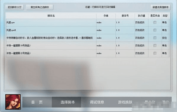 1、下載并運(yùn)行軟件,選擇腳本欄目,選擇需要設(shè)置連招的英雄.