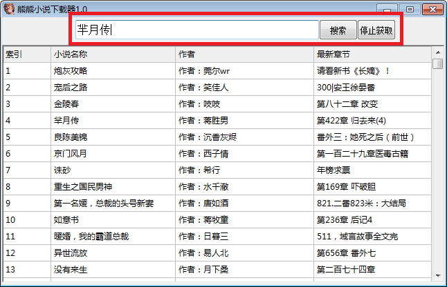 輸入小說名稱,點擊“開始獲取”;即可顯示相關小說資源;