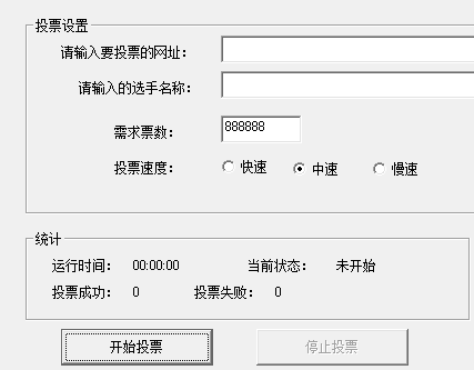 進入軟件主界面,輸入投票網址,選手名稱、投票速度以及需求票數;